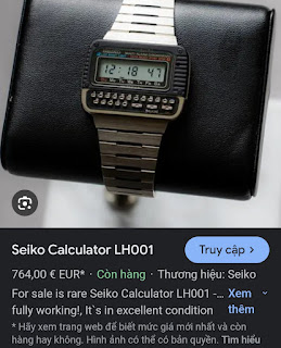 Đồng hồ nam/unisex Nhật Bản, Seiko LCD quartz, Calculator SQ LH001 Chrono Alarm, sản xuất năm 1980s tại Nhật.